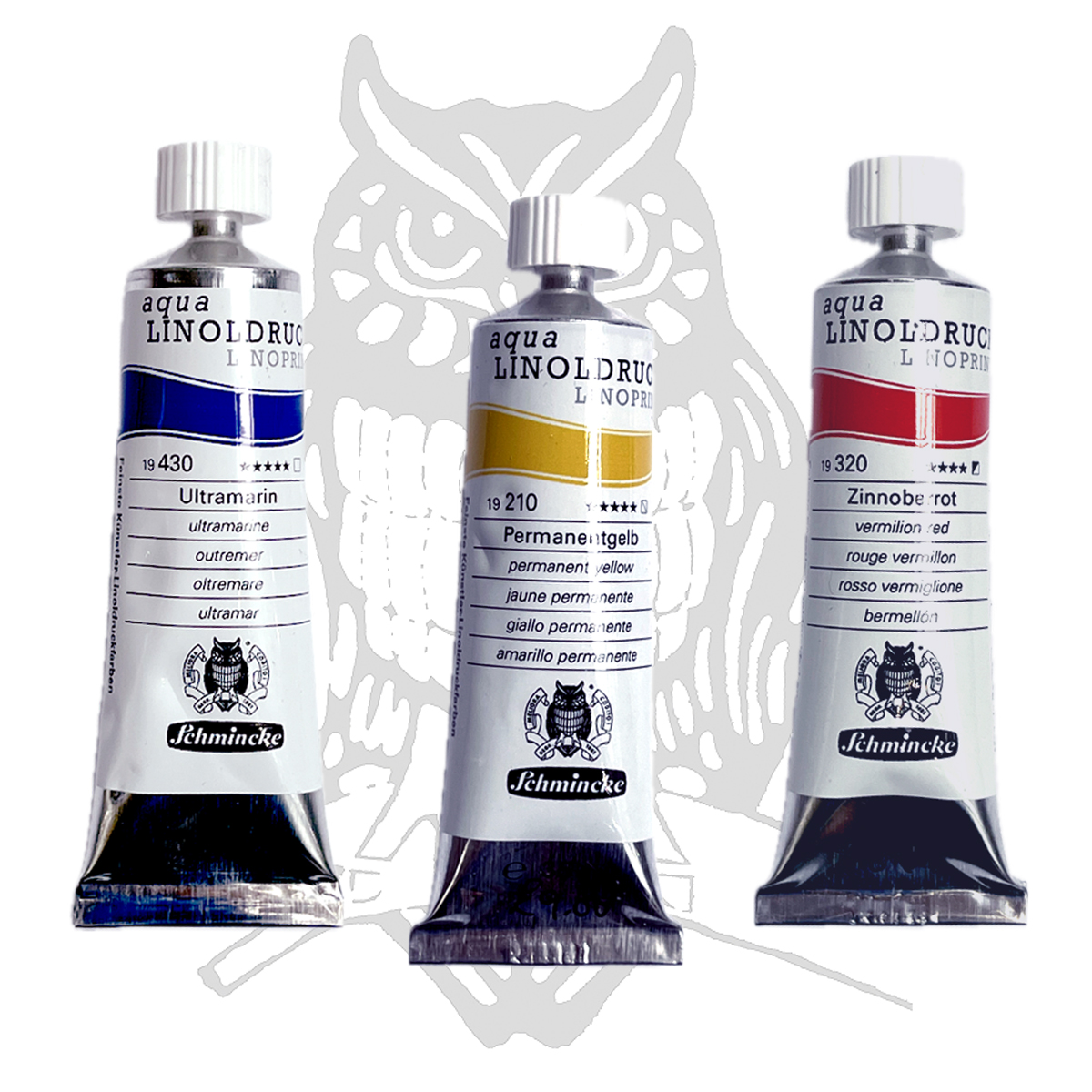 The water-based, high-quality aqua-Linoprint colours contain natural binders such as gum Arabic as well as organic/inorganic pigments. They are easy to apply due to optimum open-times and result in even, sharp prints with fast drying times (wipe-resistant after approx. 15 minutes).