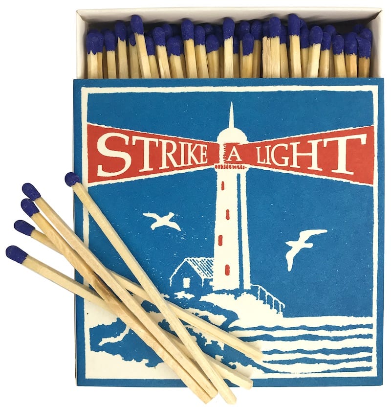 Long matches in decorative boxes 110cm x 110cm.